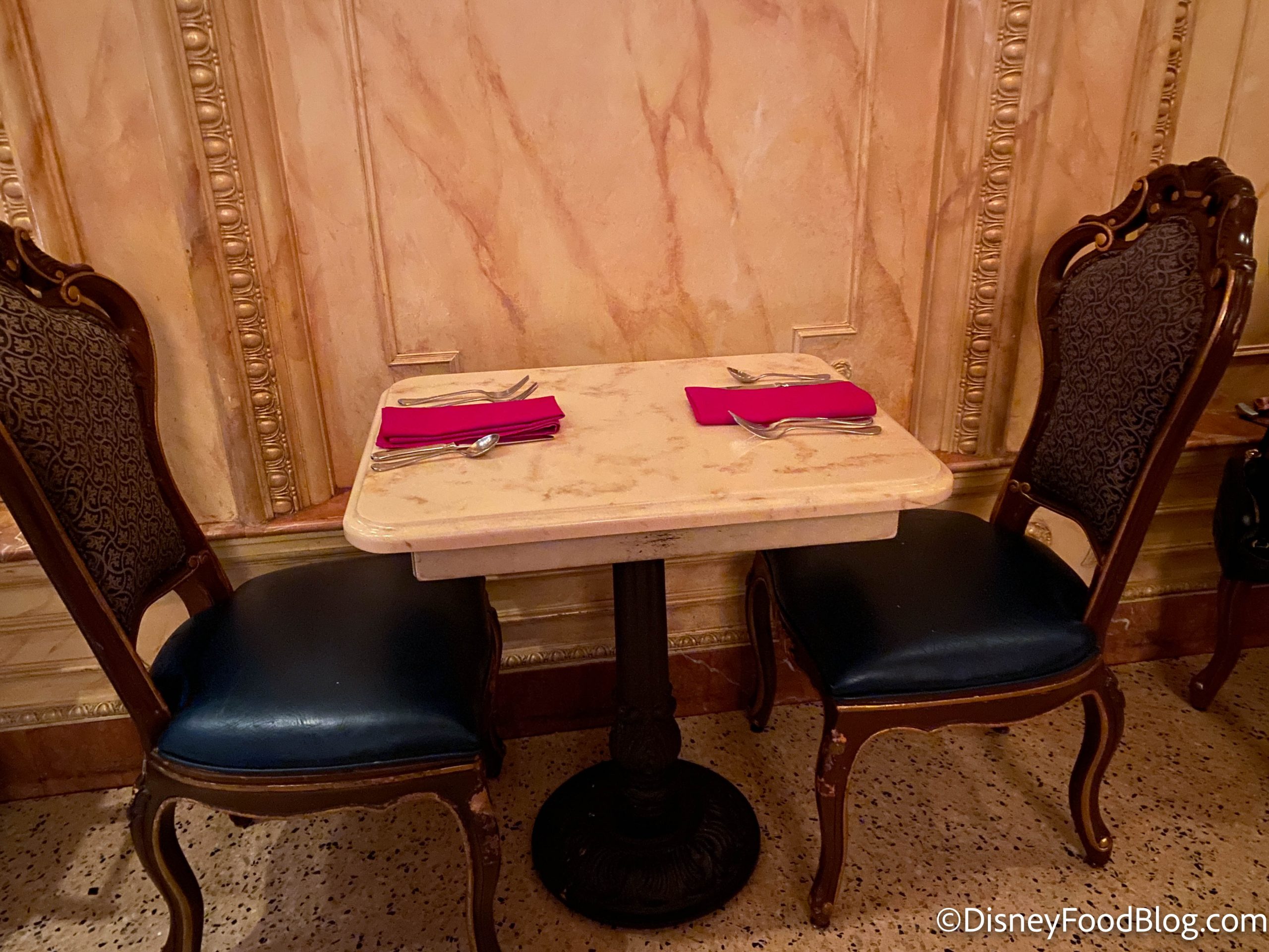 The Grand Ballroom is the signature room and one of three rooms you may be seated in. The Ballroom is, of course, where Belle and the Beast had their first dance.