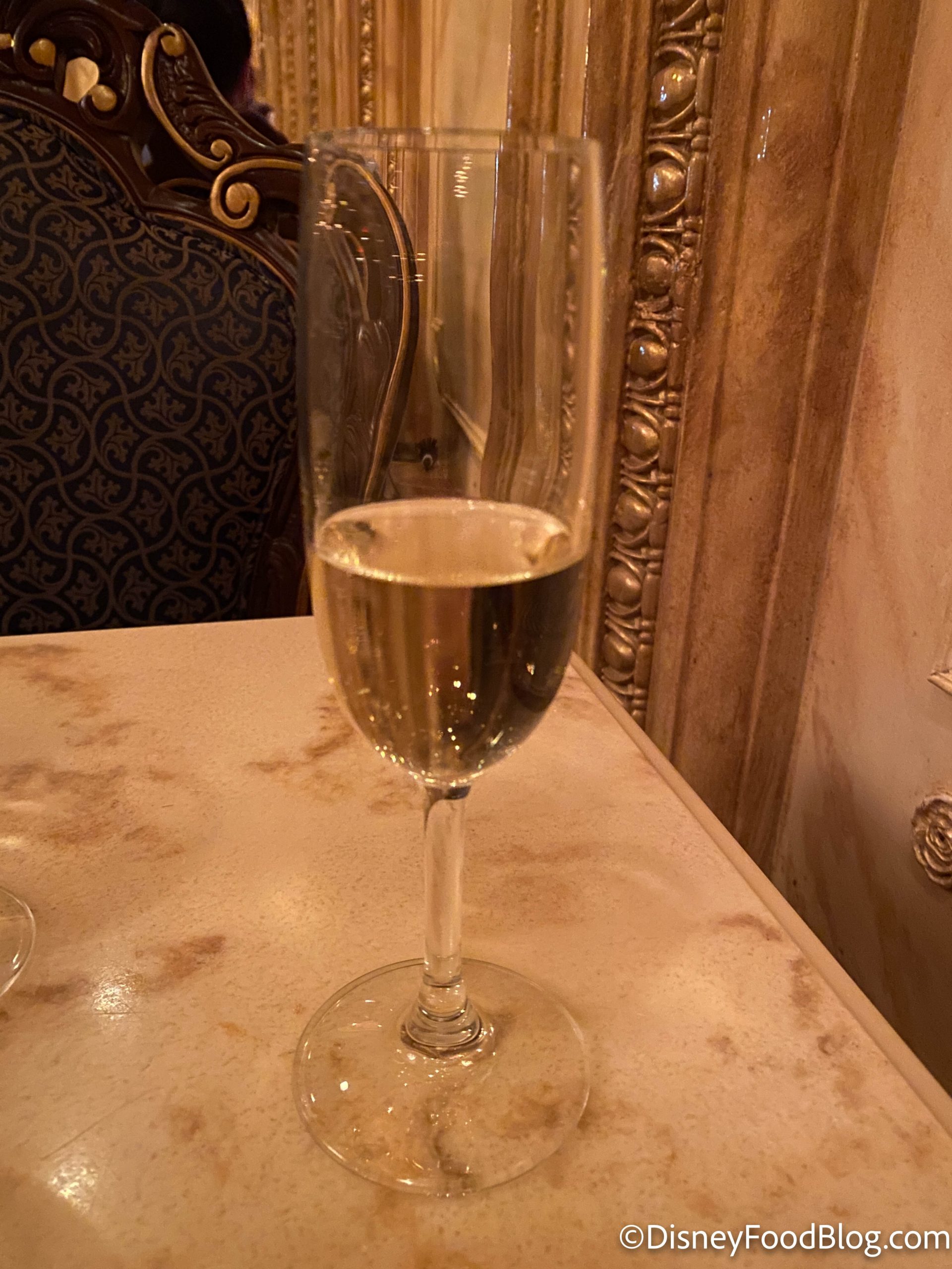 We chose to try the Be Our Guest Private Label Wine Sampler for $24. The sampler offers smaller offerings of three wines, including the Enchantée Rose, L’ombre de la Bete Chardonnay, and L’ombre de la Bete Vin Rouge, which provided a nice taste to pair with each course. They were out of the Enchanteé Rose, so it was substituted with Enchantée Champagne Brut.