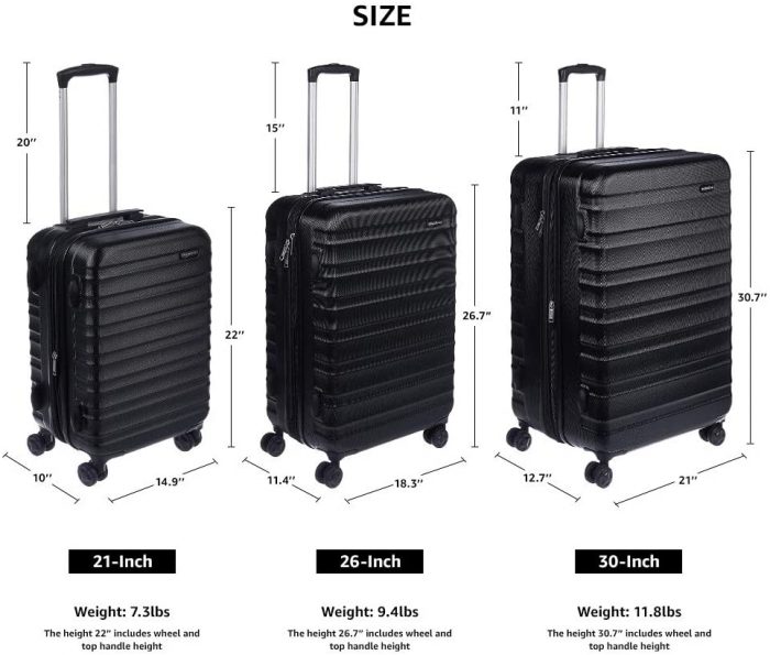 We end our list with some luggage that has high reviews but is quite pricey. The Samsonite Hard-sided expandable luggage with spinner wheels, 28-inch bag is priced at $159.99 but overall this brand seems to be highly rated.