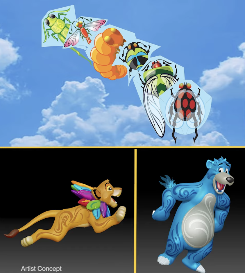 KiteTails will use massive 3D kites depicting characters like Zazu, Baloo, Simba, and King Louie to put on a show! Of course, there will be plenty of Disney tunes throughout the show. There will also be a pre-show featuring kites with characters from A Bug’s Life, Little Mermaid, and Finding Nemo and a worldbeat soundtrack!