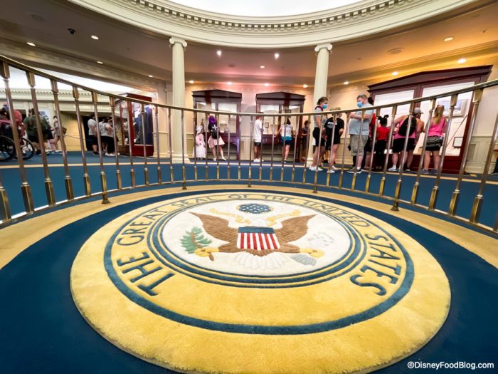 You can spot the Presidential Seal inside The Hall of Presidents at Magic Kingdom before entering the showroom!