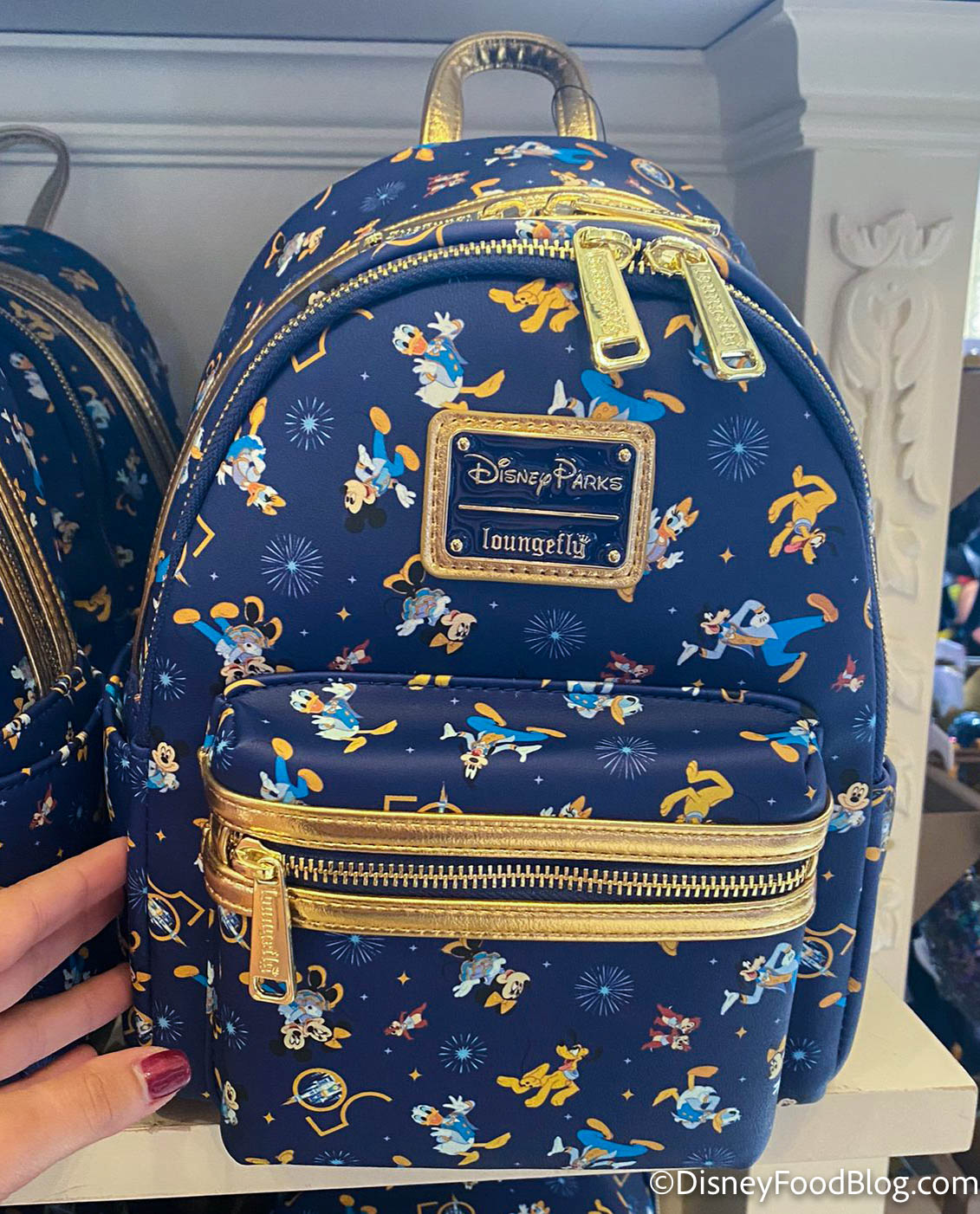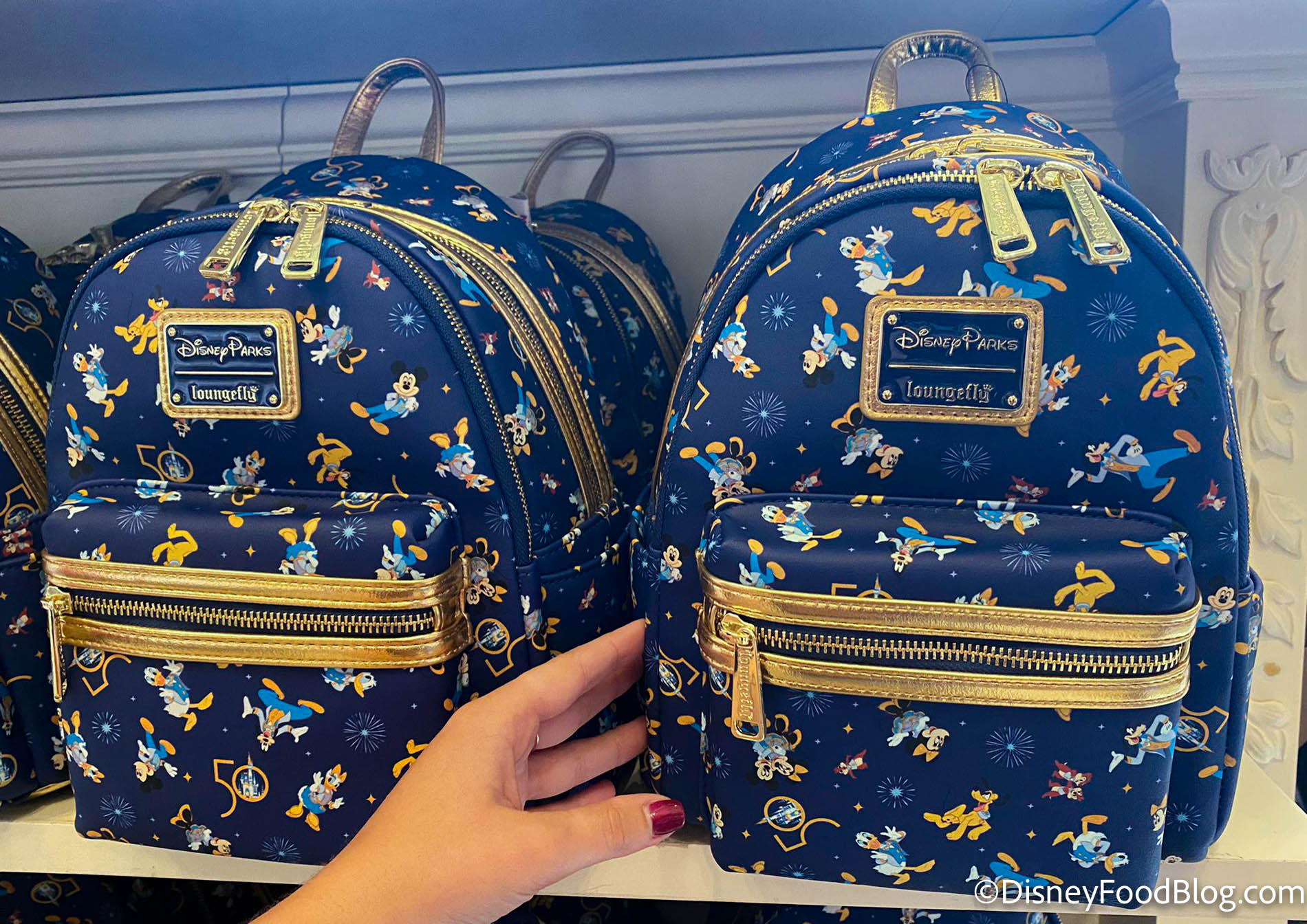 And if you want to match your new Loungefly Ears to your bag, you can get the official 50th Anniversary Loungefly Mini Backpack is blue with gold hardware.