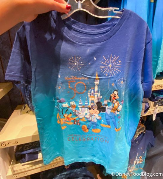 As for clothing, there are quite a few new 50th anniversary t-shirts to choose from, like this EARidescent Cinderella Castle T-Shirt for $36.99.
