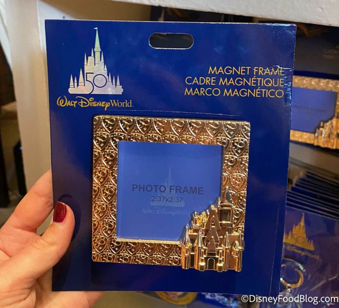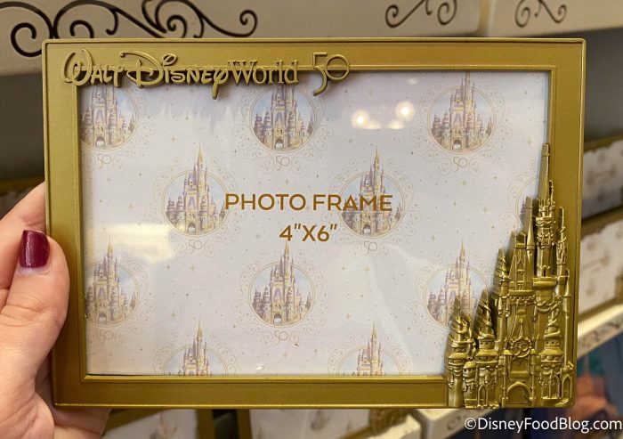 You can display your favorite Disney World photo with this gold 50th Anniversary Photo Frame, with Cinderella Castle in the corner for $34.99.