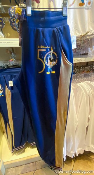 You can also get comfy 50th Anniversary Sweatpants in blue and gold for $49.99.