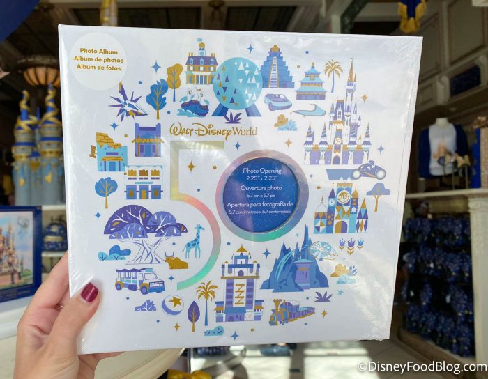 …and this photo album with a white background and colorful EARidescent and Disney Park details. This 50th Park Icon Photo Album is $24.99.
