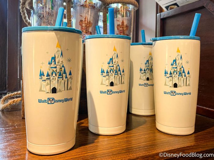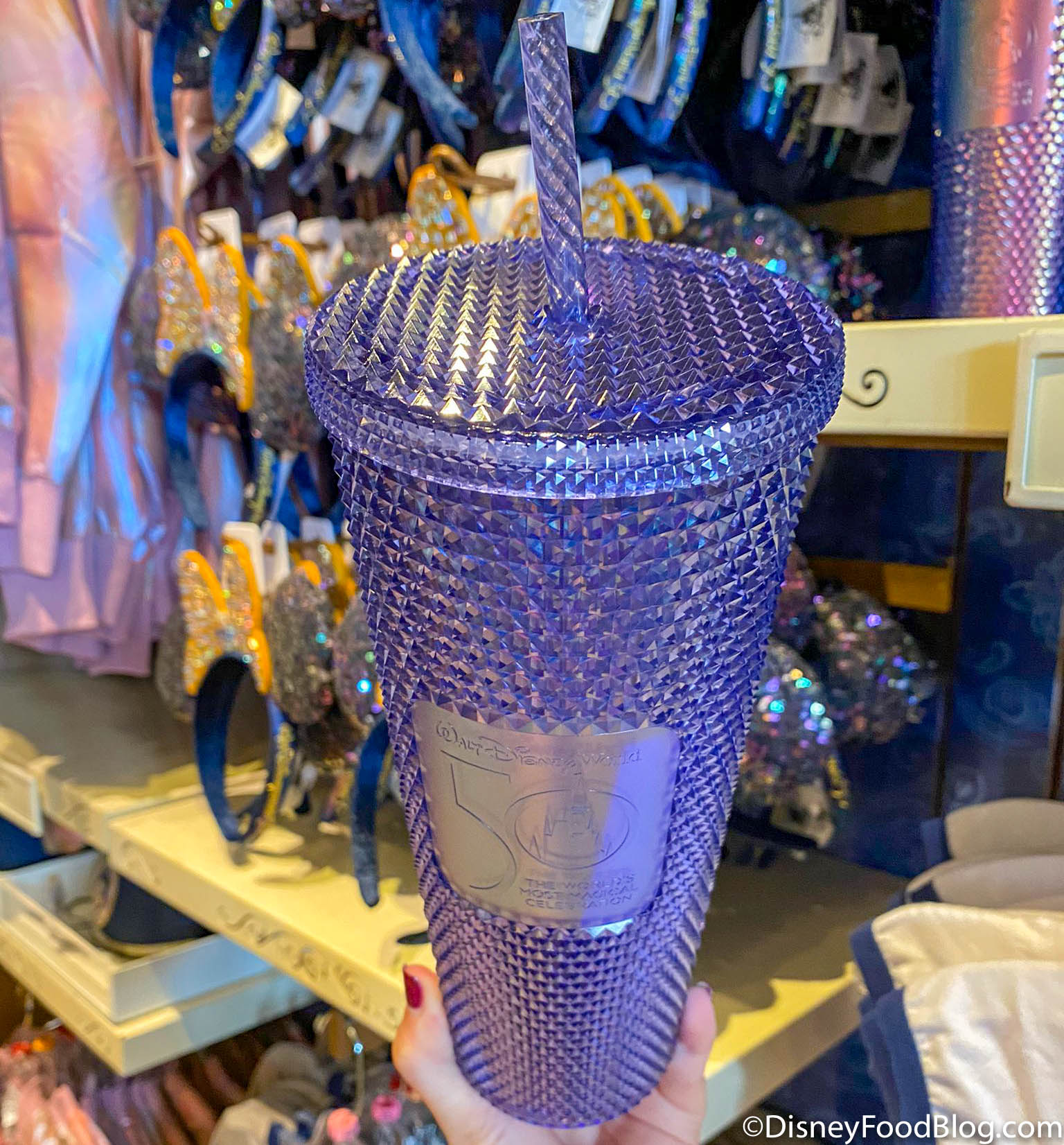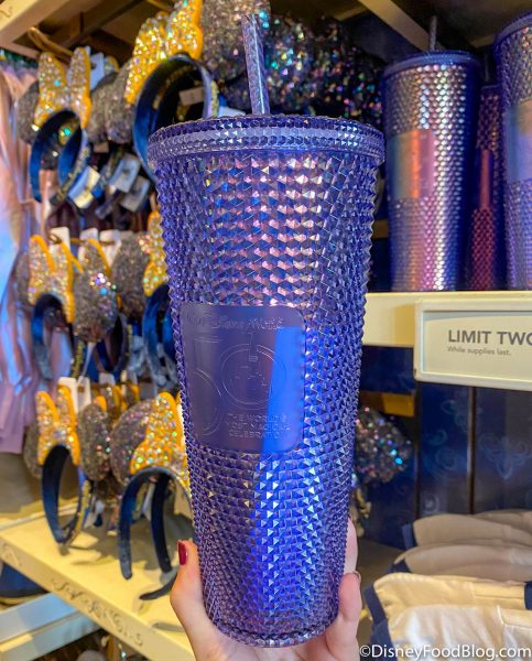 Earlier today, a whole bunch of new 50th Anniversary merchandise became available at the Emporium in Magic Kingdom. Aside from new ears, shirts, and more (all of which we’ll be sharing in another post), we also spotted a NEW 50th Anniversary Starbucks Tumbler!