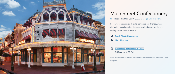 On the Disney World website, the Main Street Confectionery has been listed as “under refurbishment” for a while. But now, the fan-favorite shop is showing hours starting on Wednesday, September 29th — that’s next week!