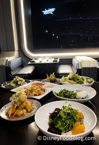 And then there’s the experience. Your trip in a space elevator. Entering the Centauri Space Station. Looking out those panoramic windows down on earth. It’s VERY cool and unique. There’s really nothing else like it around Disney World. That’s why we think, if you can swing it, you should give the spot a try at least once. We found the views in most of the restaurant to be great to good. The “best” seats of the house are debatable, but we think being right up on the glass looking out into space felt the most immersive to us. The raised portion of the dining room farther back had a nice sweeping view out the windows and offered a different experience that was still really enjoyable. That said, there are some tables to the far sides that we suspect guests shelling out 80 bucks each will be disappointed to be seated. The views can be a bit more limited and less “in the action” feeling than those more centrally located in the dining room. Just something to keep in mind.
