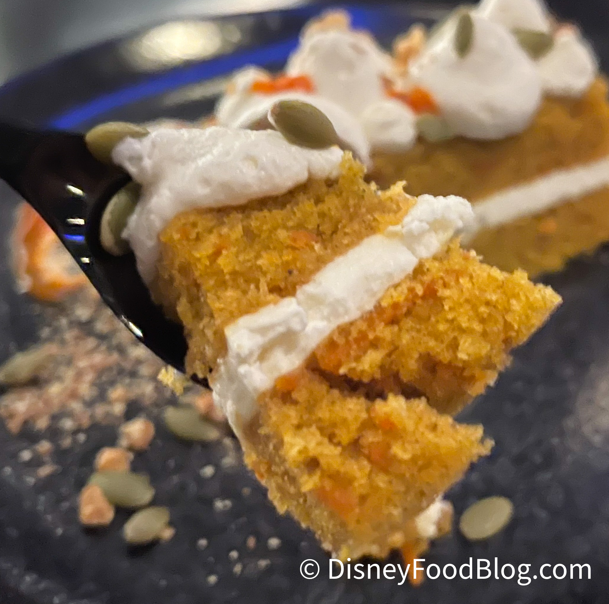 Let’s start off with the Carrot Cake! This is a Plant-Based Carrot Cake with Plant-Based Cream Cheese, Candied Walnuts, Toasted Pepitas.