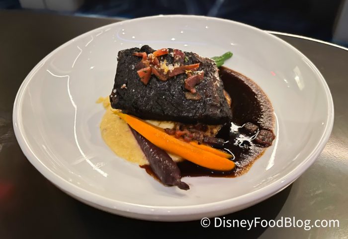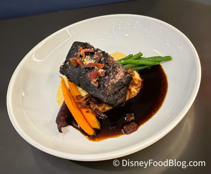 Another red meat option is the Slow Rotation Short Rib, which is a Braised Short Rib with Cheddar Grits, Bacon, and Haricot Vert.
