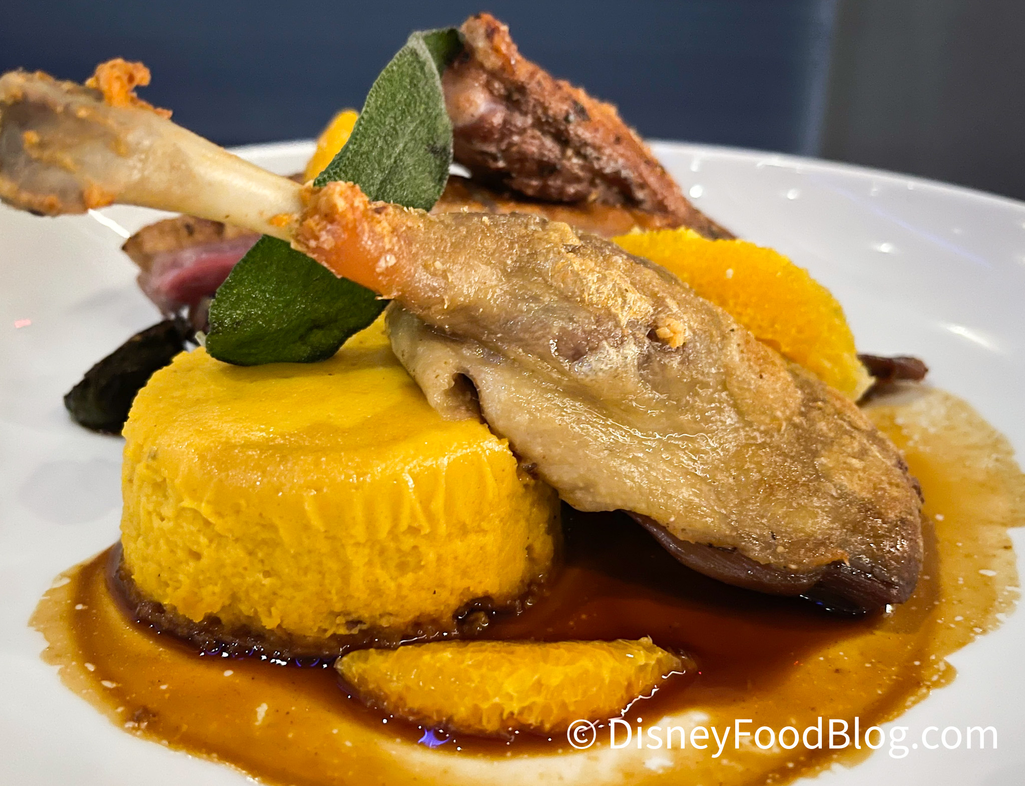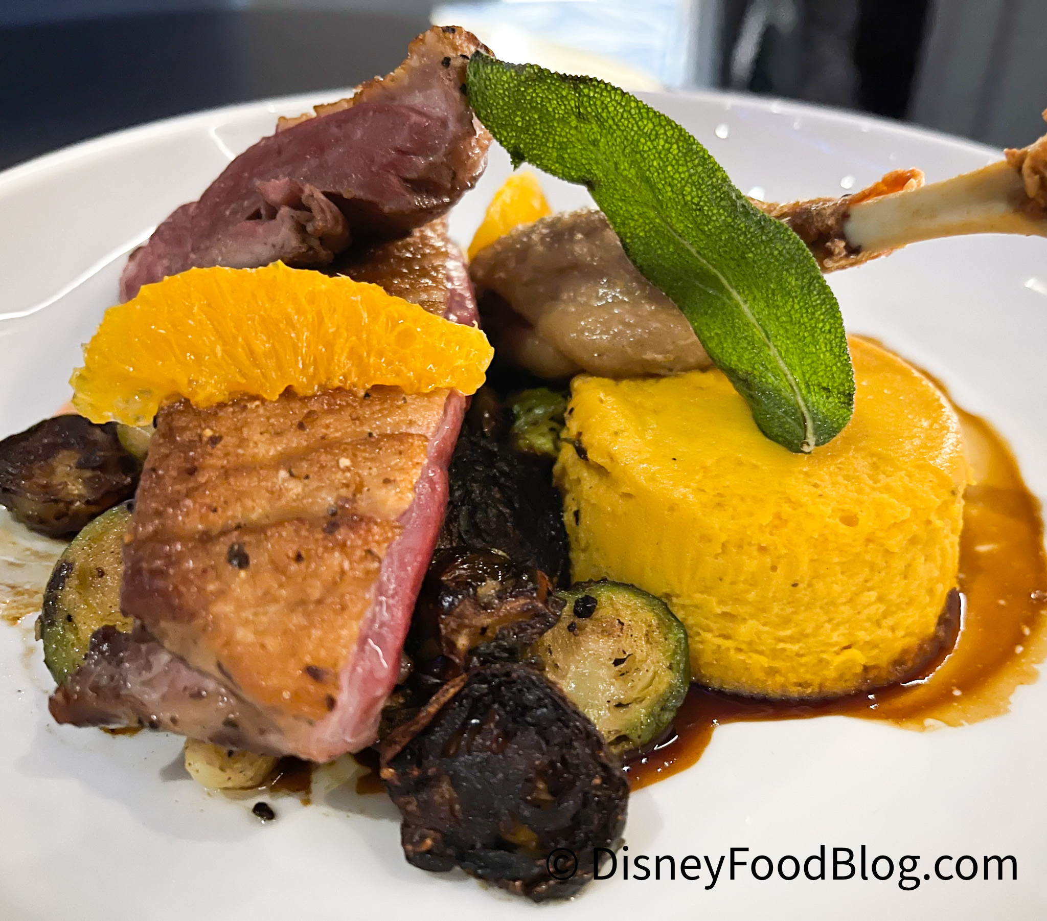 The next entree up is the X2 Duck! Doesn’t that just sound cool? This dish comes with a Roasted and Confit Crescent Duck, Butternut Squash Flan, Brussels Sprouts, and an Orange Glaze.