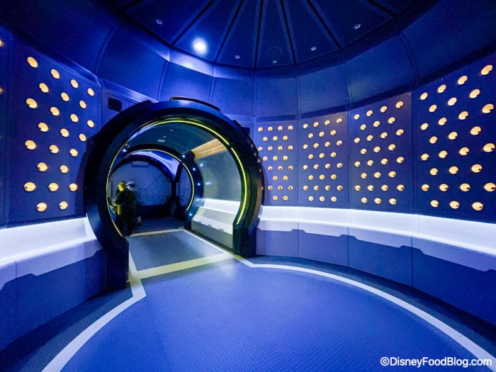 Then, it was time to get in that awesome space elevator! This element is really one of the big draws of the restaurant. It’s so unique. Our reporters (now well-seasoned space travelers) said this combined with the windows into space in the actual restaurant were the major selling points of the restaurant for them.