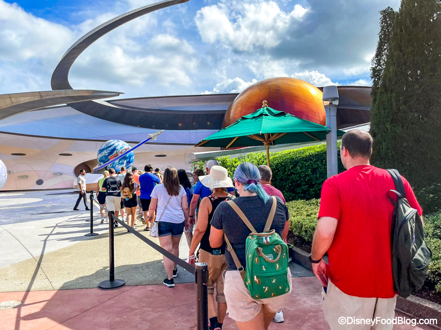 We’ve been waiting literal YEARS for this futuristic restaurant to open, and the anticipation has been building ever since seeing new concept art, menu details, and a sneak peek inside. At last, we got to go inside yesterday and eat a meal! We saw some awesome details and ate delicious food. But, we weren’t the only ones eager to get inside, because there was about a 4 hour long line to get into Space 220 on opening day. But today, there might be a solution to that long line!
