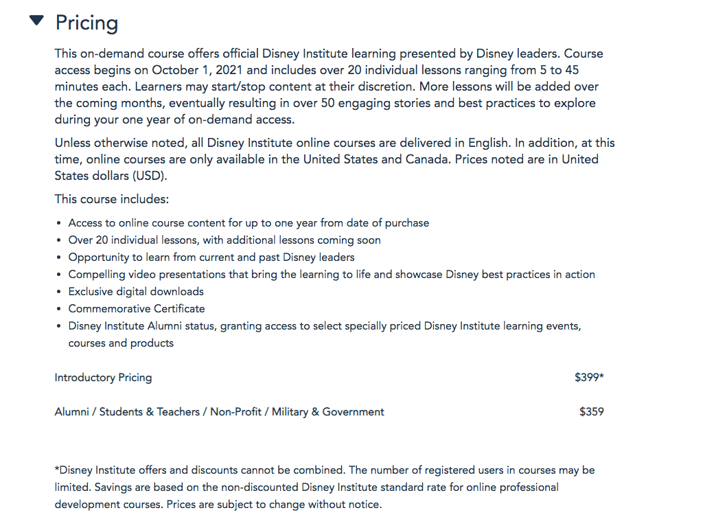 Disney shares that it is the “most comprehensive online-learning experience Disney Institute has ever created” and it was designed with Disney’s most “curious and passionate” fans in mind.
