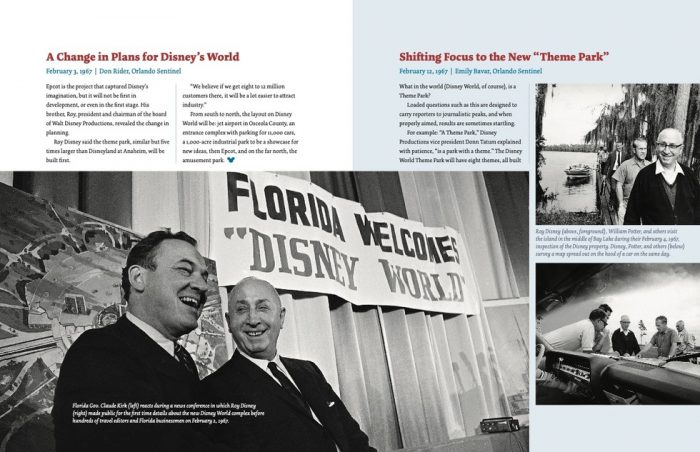 The book contains stories like the one of Emily Bavar sleuthing out Walt’s intentions in Florida, reproductions of original newspaper clippings, excerpts from other coverage, and rarely seen photos from the Orlando Sentinel’s Disney images archives. The book is an especially fitting souvenir to commemorate the 50th as it focuses a lot on the opening day of Disney World in 1971!