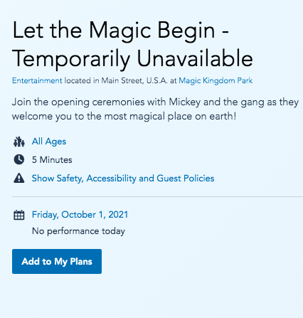 Instead, the Disney website has now been updated and operating hours for the show do not appear until October 4th. We’ll keep an eye out for more information.