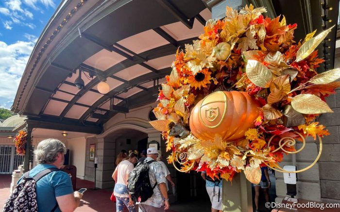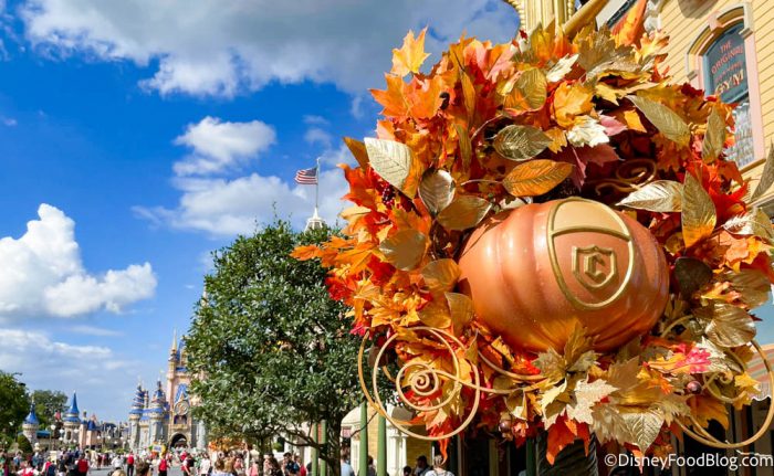 Disney decorates for the holidays a little bit early, but we’re not complaining. We love to see the pumpkins, wreaths, and banners go up. What we WEREN’T expecting, though, was to see some decorations come DOWN today. That’s right — a staple fall decoration was missing from Magic Kingdom today!