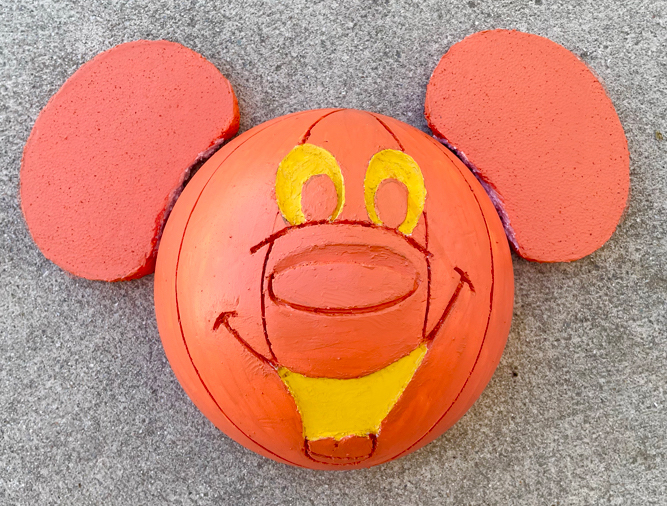 - Color your pumpkin with spray or acrylic paint. Use yellow in the carved sections to make your Mickey look like he’s glowing!