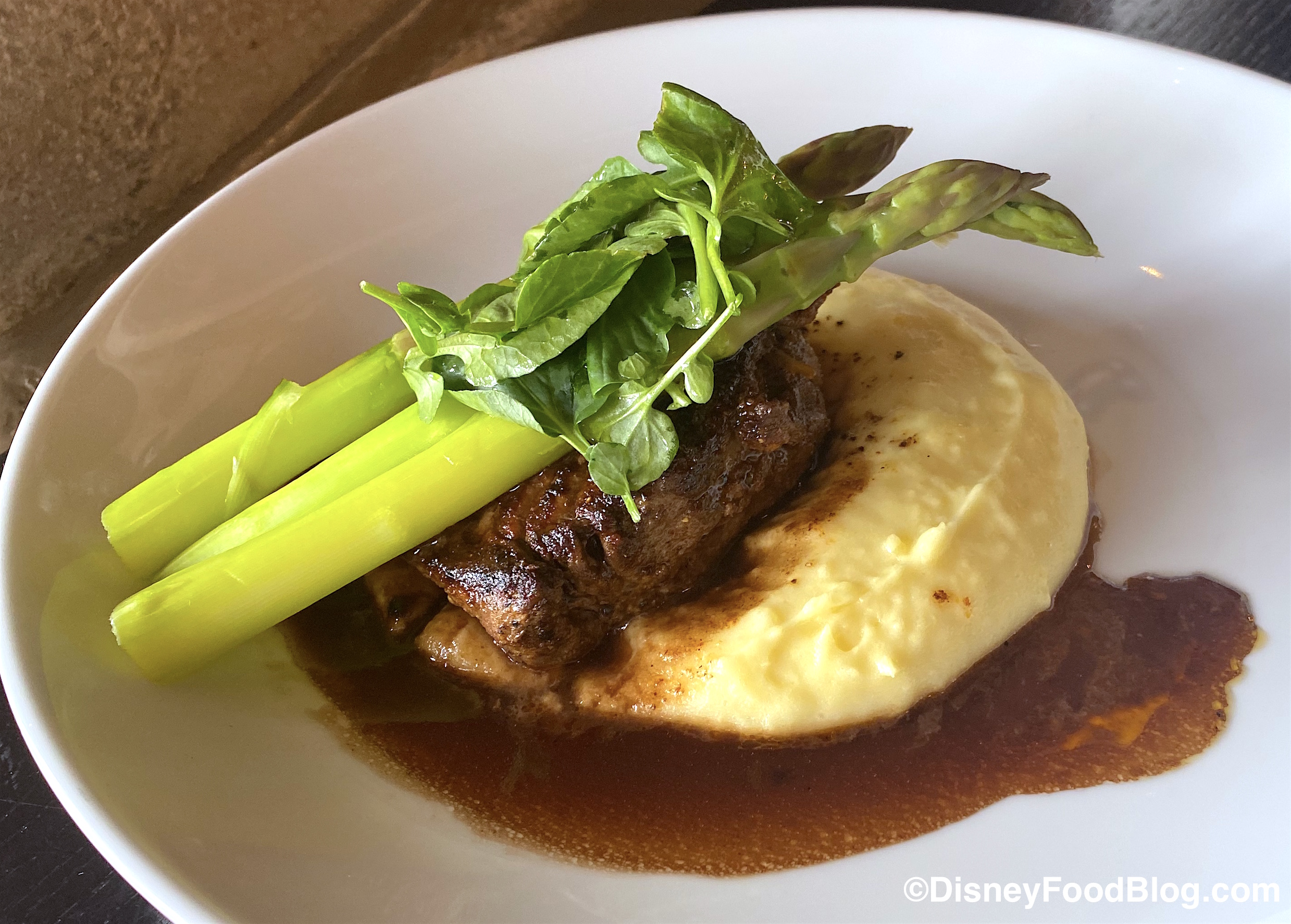 In terms of their standard lunch/dinner, Be Our Guest offers dishes with French inspiration. There are 4 different appetizer selections, 5 entree selections, and a dessert trio that features 4 different items. There are some okay options here, and other dishes that we’ve really enjoyed. Some standouts include the french onion soup and the center-cut filet mignon.