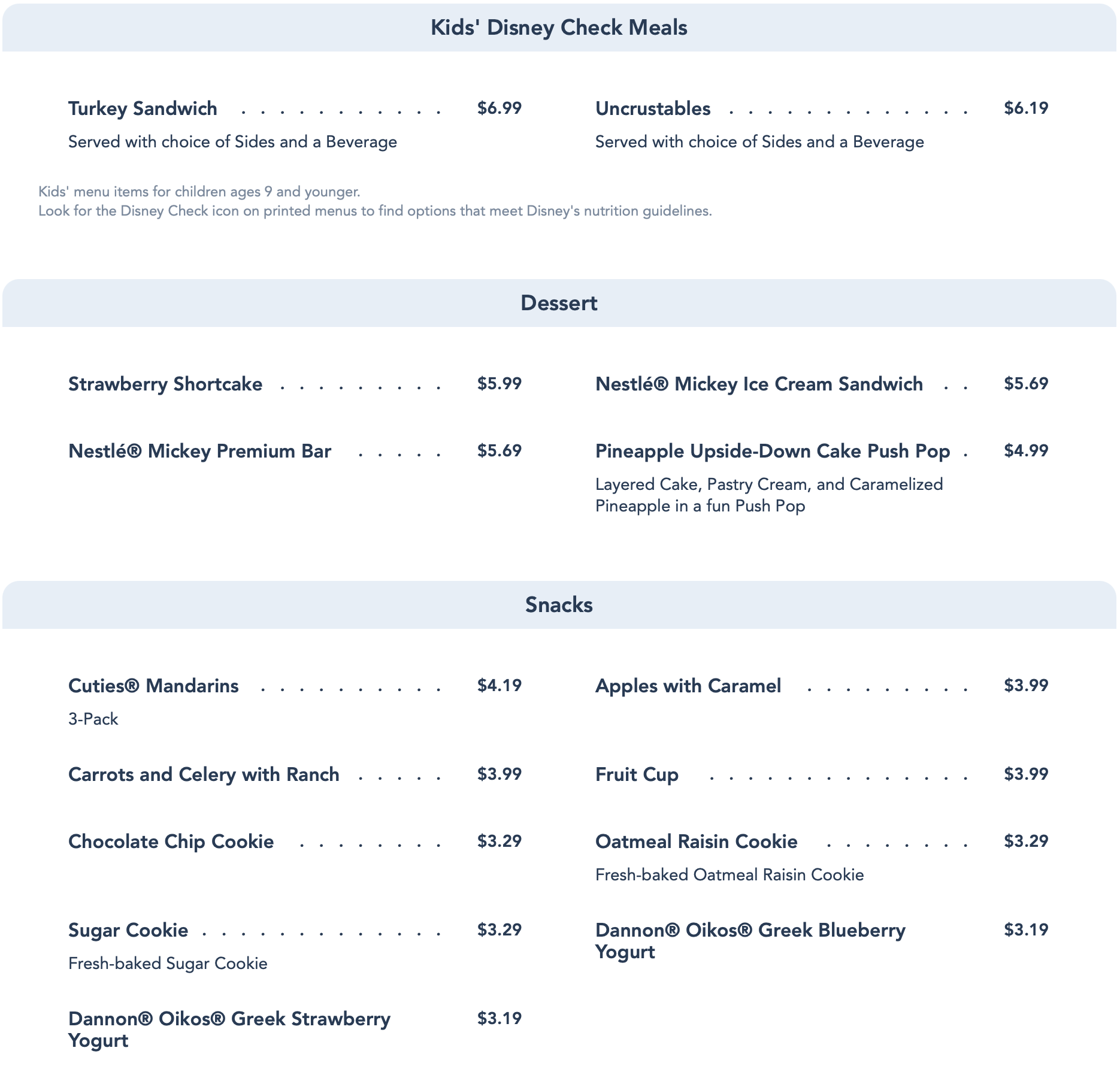 Kids’ Meals, Desserts like the Pineapple Upside-Down Cake Push Pop, Snacks for anyone on the go…