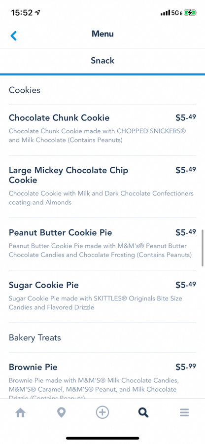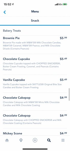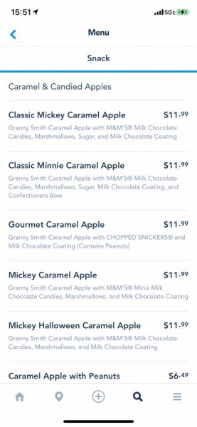 We found the full menu on My Disney Experience, however they are not listed on the website yet. First, there are the snacks, like various kinds of caramel and candied apples.