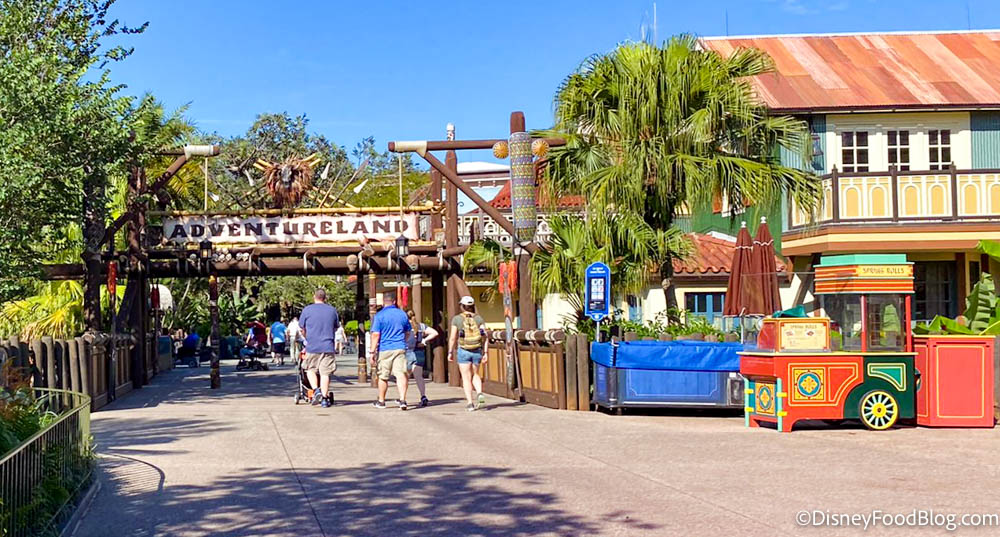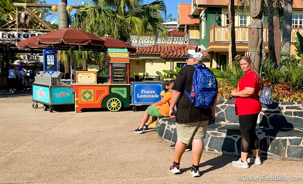 If you’re in the Magic Kingdom and looking for a tasty snack, you can find the Spring Roll Cart just before the entrance to Adventureland on the right-hand side.