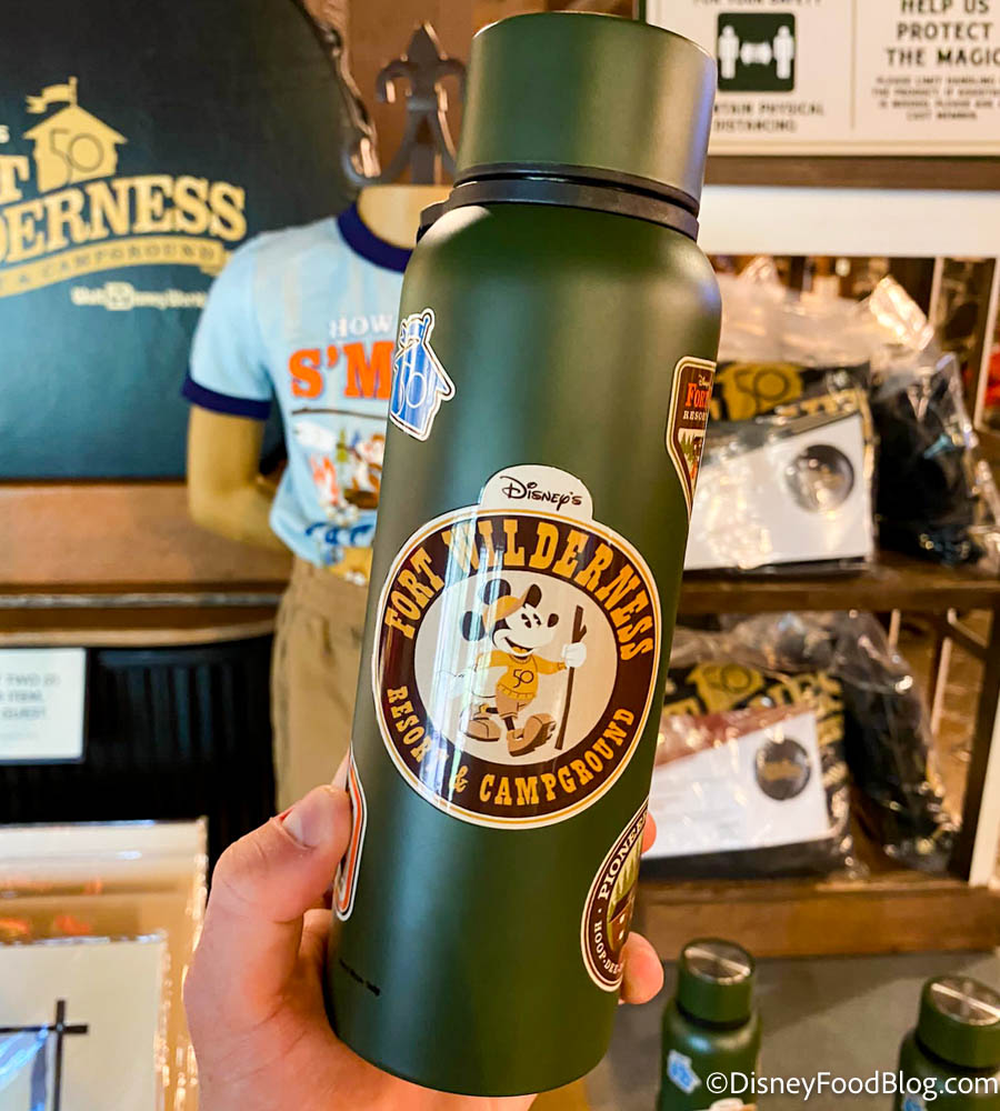 The bottles are covered in stickers that have a Fort Wilderness theme.