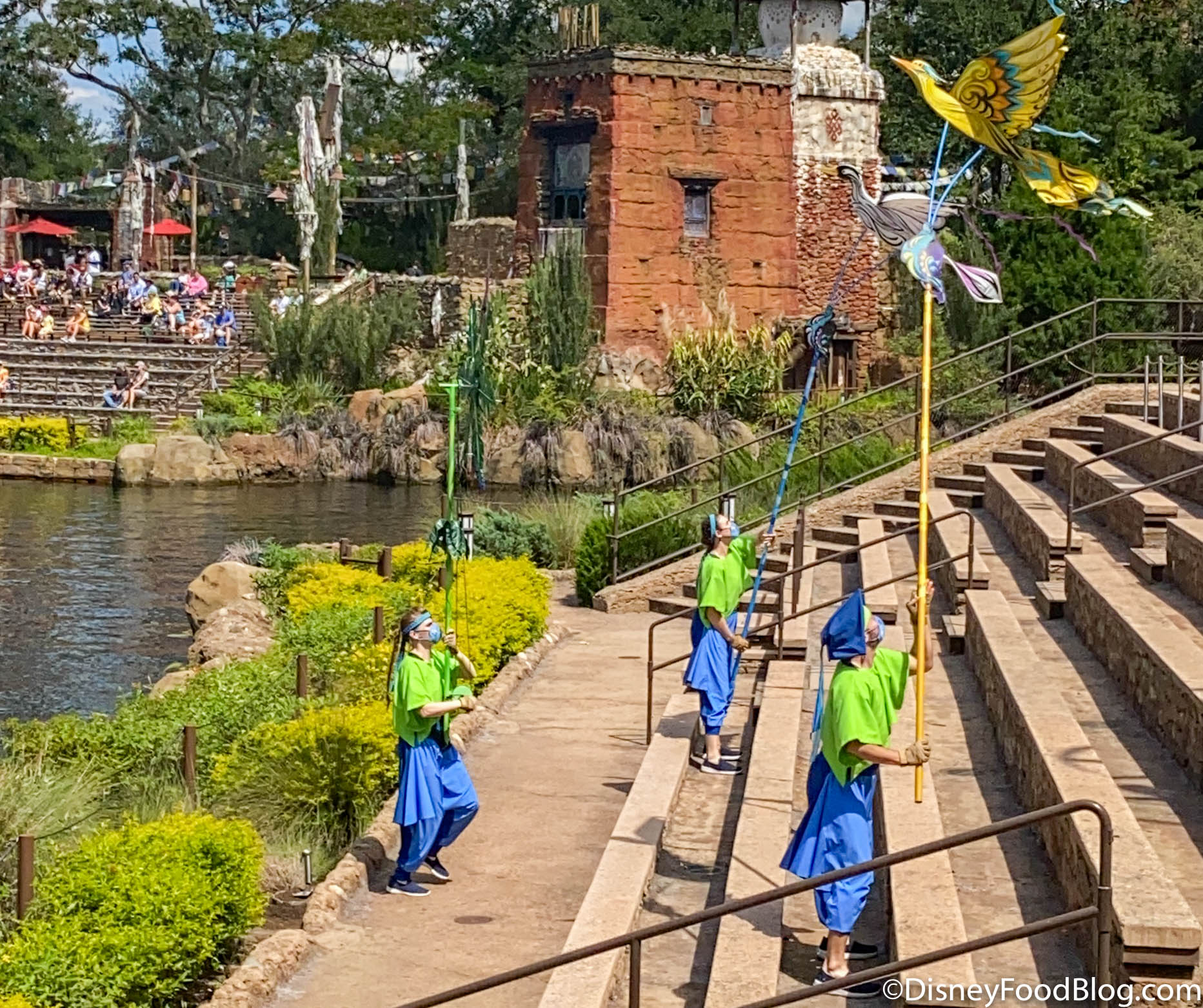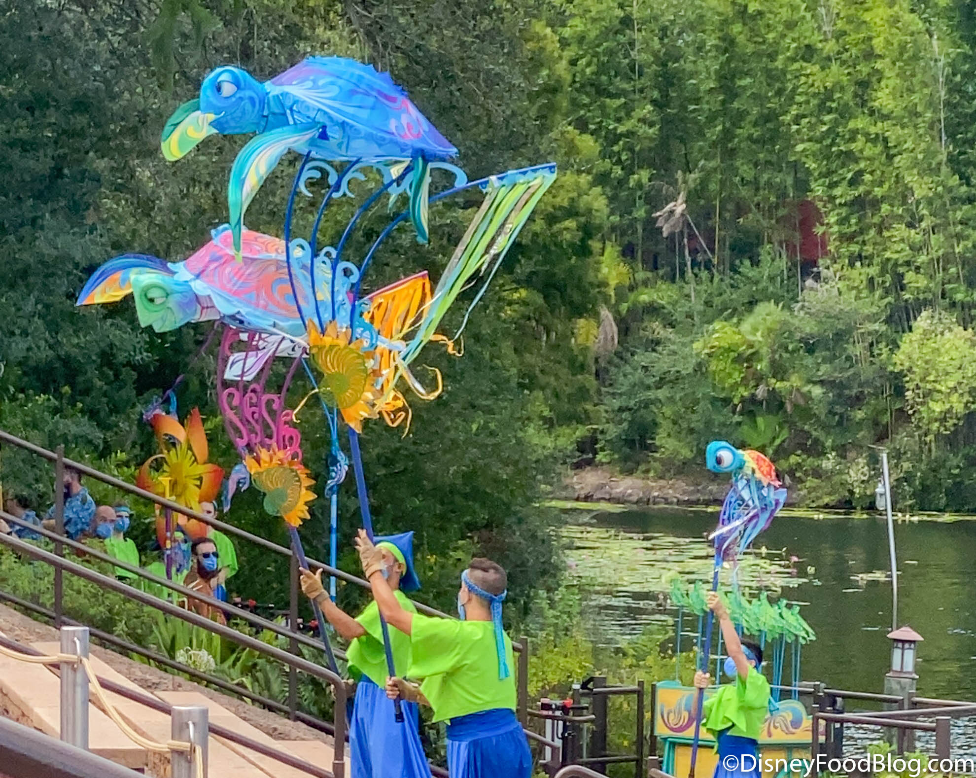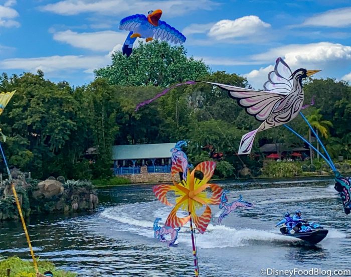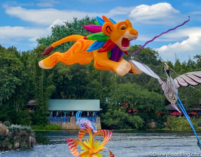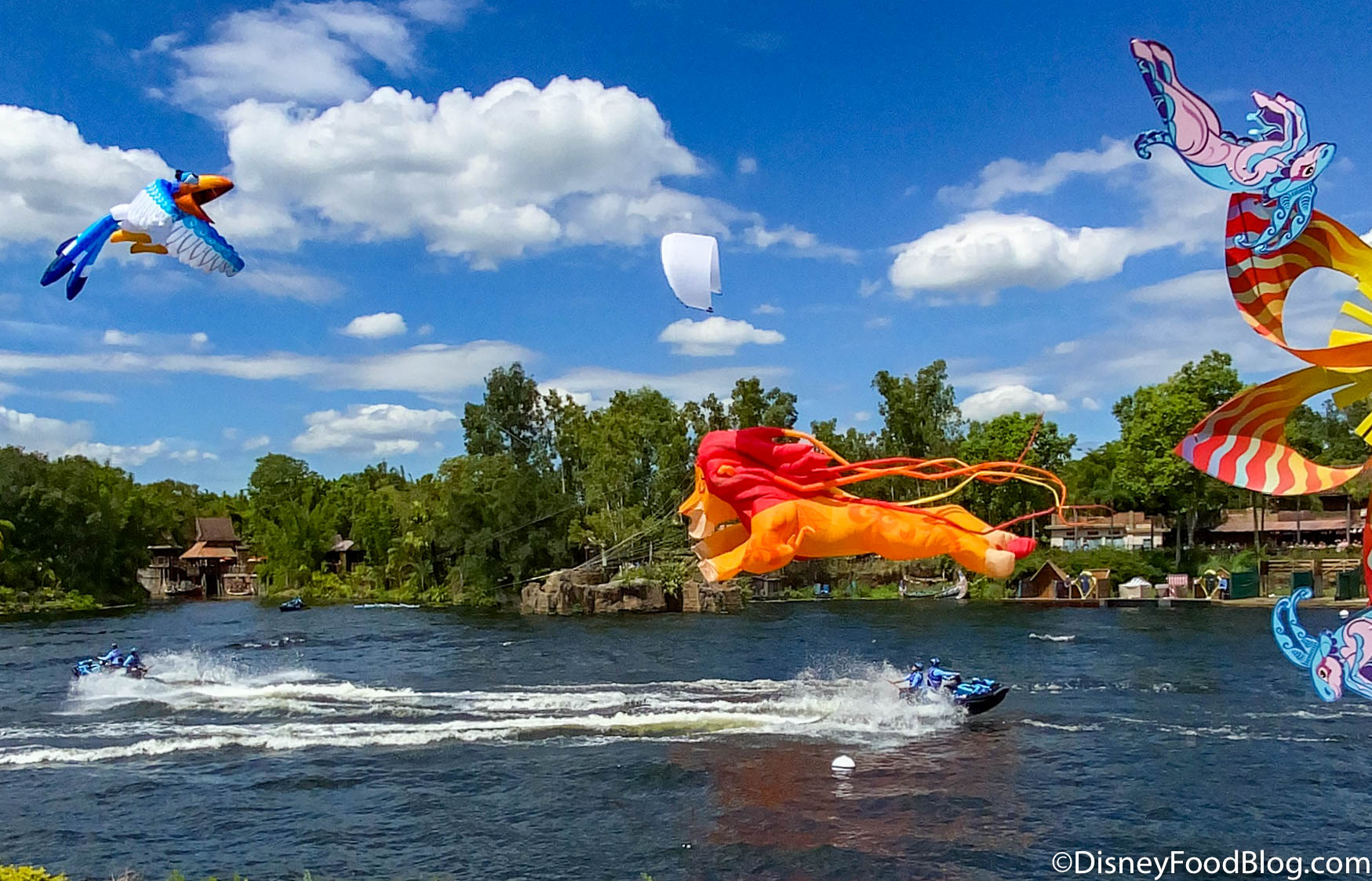 When we saw the show at 11AM today, it was focused on The Jungle Book, which is why we saw the Baloo and King Louie kites, as well as the elephant kites. It’s our understanding that the Lion King-themed version of the show will be presented today at 1PM. That’s what we’ve experienced today. Right now, Disney’s website doesn’t specifically note that different show times will feature differently themed sets, so we’ll keep an eye out for more updates on that.