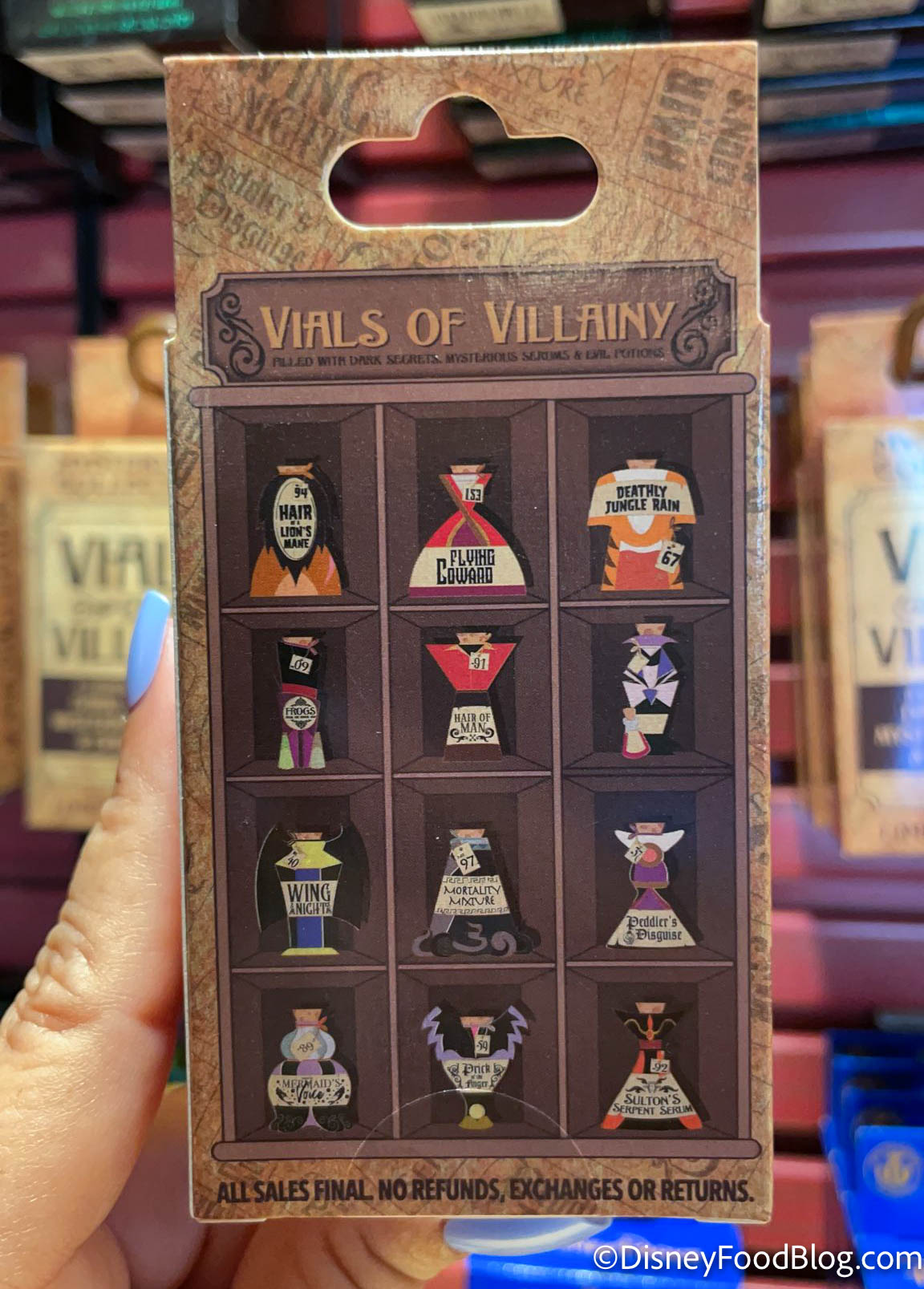 There are 12 mystery pins you could get, and they’re designed as vials inspired by iconic Disney Villains.
