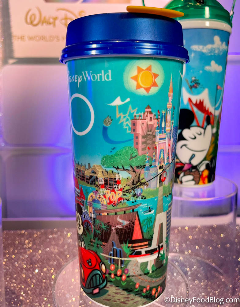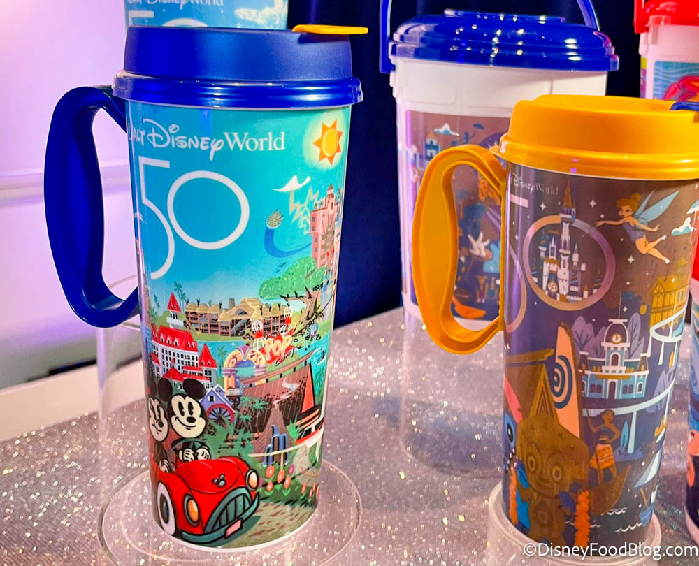 The newest 50th-themed makeover came to the refillable resort mugs that you can buy at Disney World hotels. You can buy a mug at your resort when you arrive, and then get free refills of soda or hot beverages throughout your stay.