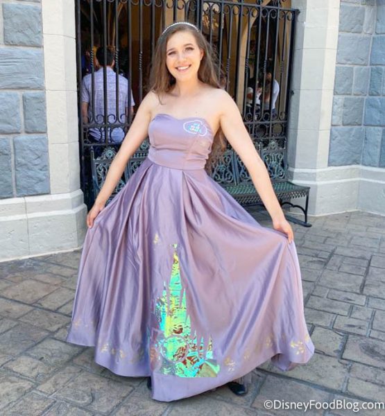 Today we found Amaya Duncan (@amayacandream on Instagram) looking quite regal in her special 50th anniversary dress! It was a lovely shade of purple with iridescent details. We see Cinderella Castle and even a Cast Member shaped name tag!
