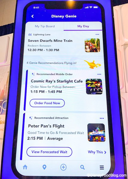 Genie is free and is designed to be used as a planning tool that is supposed to make your time at Disney World easier. It will have features like custom itineraries, forecasted wait times, and a virtual assistant. It’s scheduled to launch this fall, however, we do not have an official date yet. But today, we DID get a look at what Genie will look like when you’re using it on your phone!