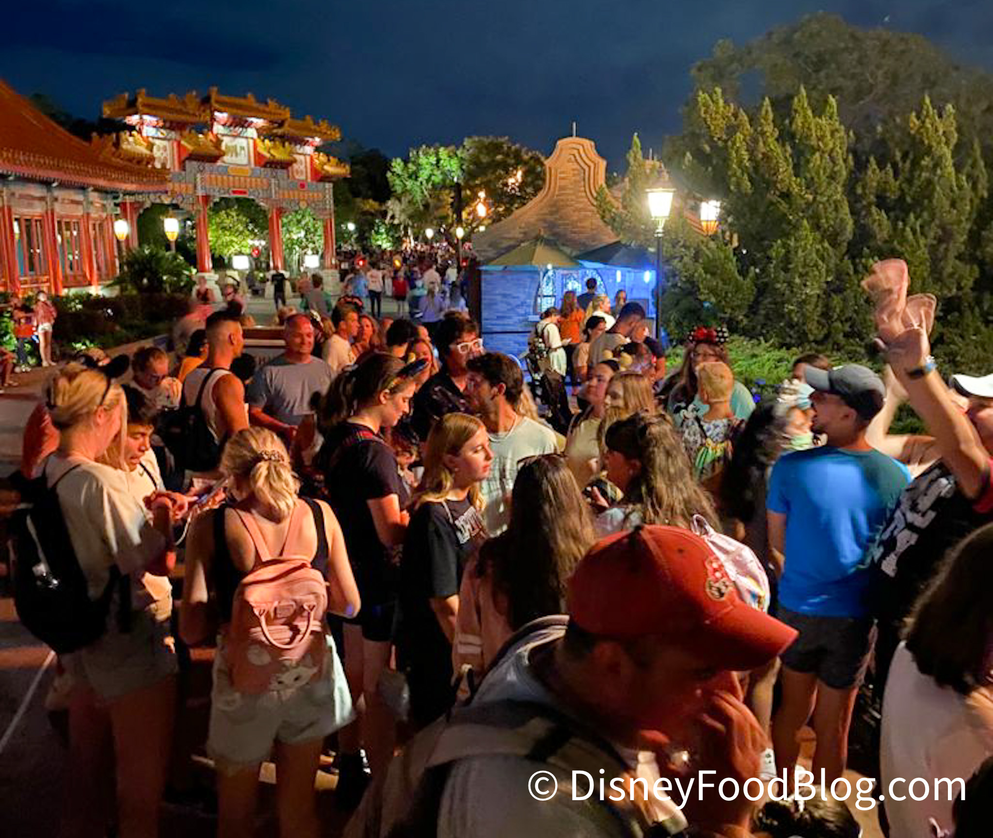 Since the show started at 9:45PM ET, we guess everyone waited until the last minute to get ready for the show. Now it’s getting pretty crowded towards the entrance to World Showcase.
