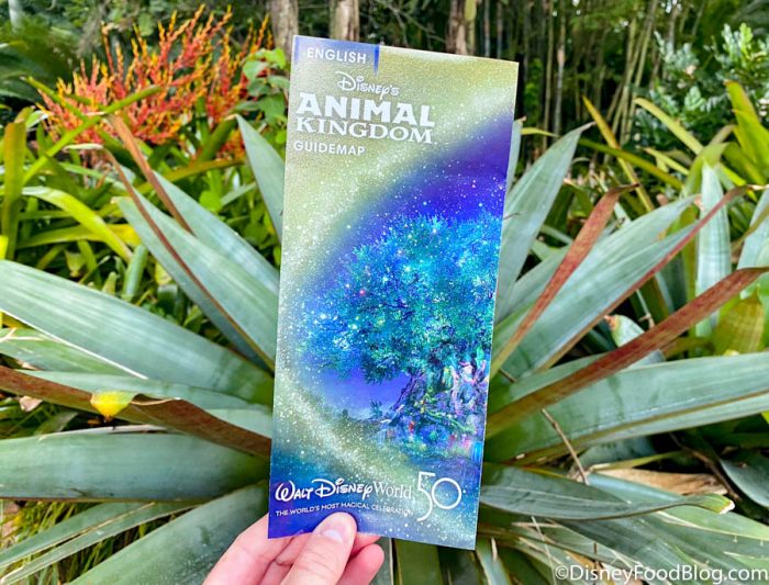 No surprise here, but Disney’s Animal Kingdom’s map features the Tree of Life with its Beacon of Magic lighting. We can’t WAIT to see the tree all lit up later today. The art looks beautiful!