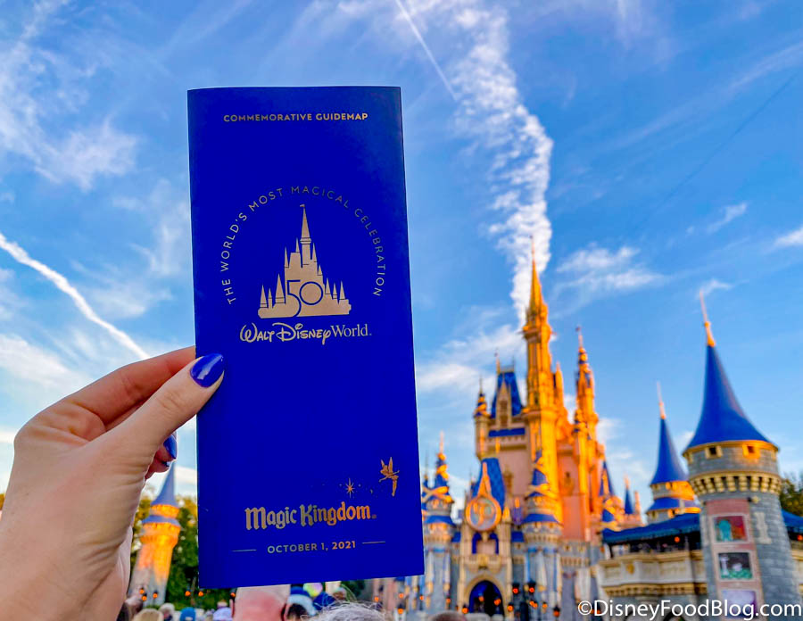 First thing this morning, we snagged the brand-new 50th Anniversary Magic Kingdom Map. Honestly, this might be the classiest park map we’ve ever seen.