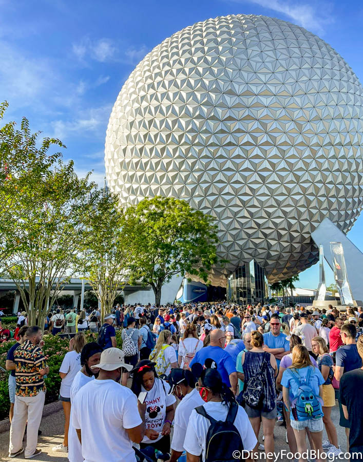 Everyone was gathered in front of Spaceship Earth waiting for the park to officially open. If you’re staying at a Disney World hotel, you can enter the park 30 minutes before opening time.