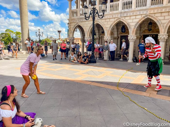 We’re kind of shocked that the crowds aren’t very big in EPCOT so far! But, we’ll be sure to update this post throughout the day so you can see if crowd levels change. So, stay tuned, because we’re covering EVERYTHING about Disney World’s 50th anniversary today!