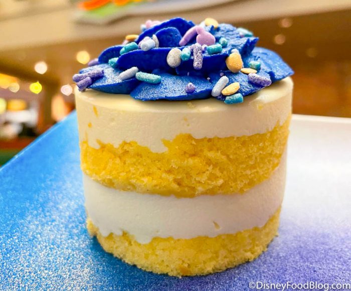 First up is the Mini Chocolate Bundt Cake for $5.49. This miniature cake is covered in chocolate ganache and filled with chocolate mousse. On top you’ll find sprinkles, and icing dusted with EARidescent shimmer, as well as a 50th Anniversary garnish made of chocolate.