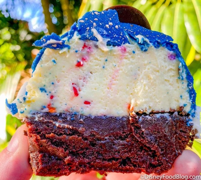 As far as taste goes, this treat is our favorite of the 50th offerings at Creature Comforts! The birthday cake mousse was a very classic yet fun dessert and went SO well with the chocolate cake. Plus, it’s fun that you have the birthday flavors for Disney World’s birthday! Although this was our favorite of the bunch, none of these treats were rockstars. We’d recommend grabbing something else in the park!