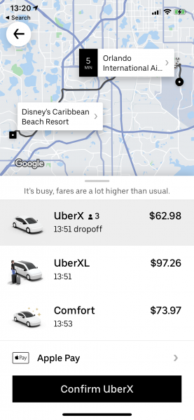 Uber, Lyft, or other ride-sharing services can take you from the airport to Disney. Prices for these ride-sharing services range depending on the time of day, the distance you’re traveling, and the customer demand, but there’s a good possibility this transportation option could end up costing you and your travel party less than booking a ride on the Mears Connect — especially if the prices for the Mears Connect rise after the Introductory Prices are no longer available.