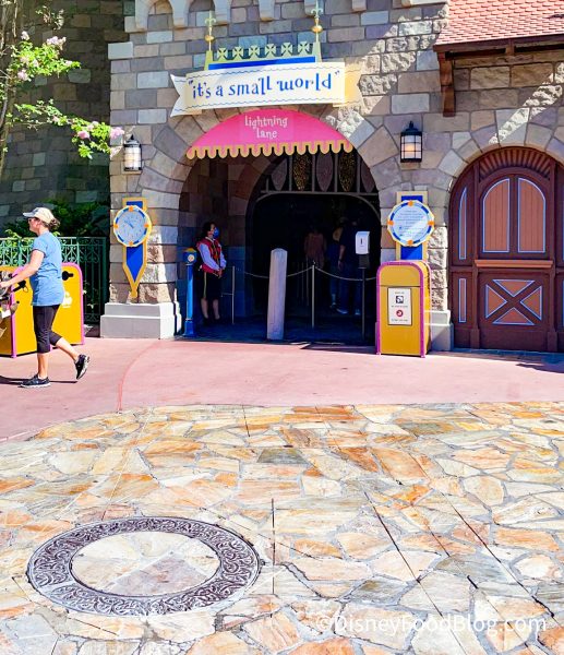 Even the ground at Magic Kingdom has been getting a bit of a makeover the past year, with work done on the flooring in Tomorrowland and Adventureland already. And, it looks like Fantasyland is next up on the list! This week we noticed that the cobblestone ground had been scored just out front of “it’s a small world” in preparation to be redone.