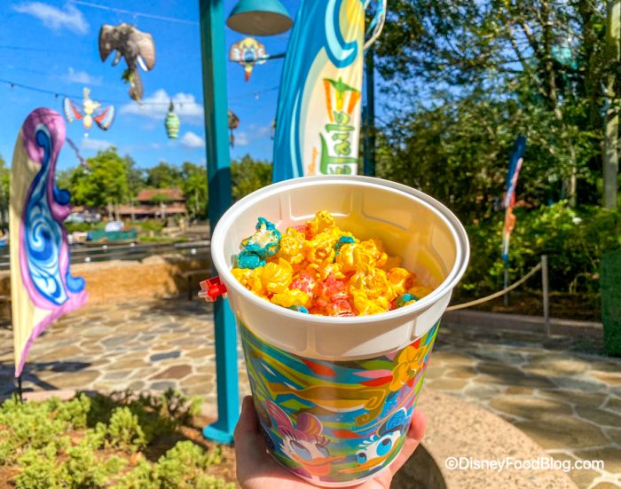 But don’t worry, Magic Kingdom isn’t the only park with new snacks and treats! We found some colorful new popcorn in Disney’s Animal Kingdom today, and one of the flavors is pretty interesting… .