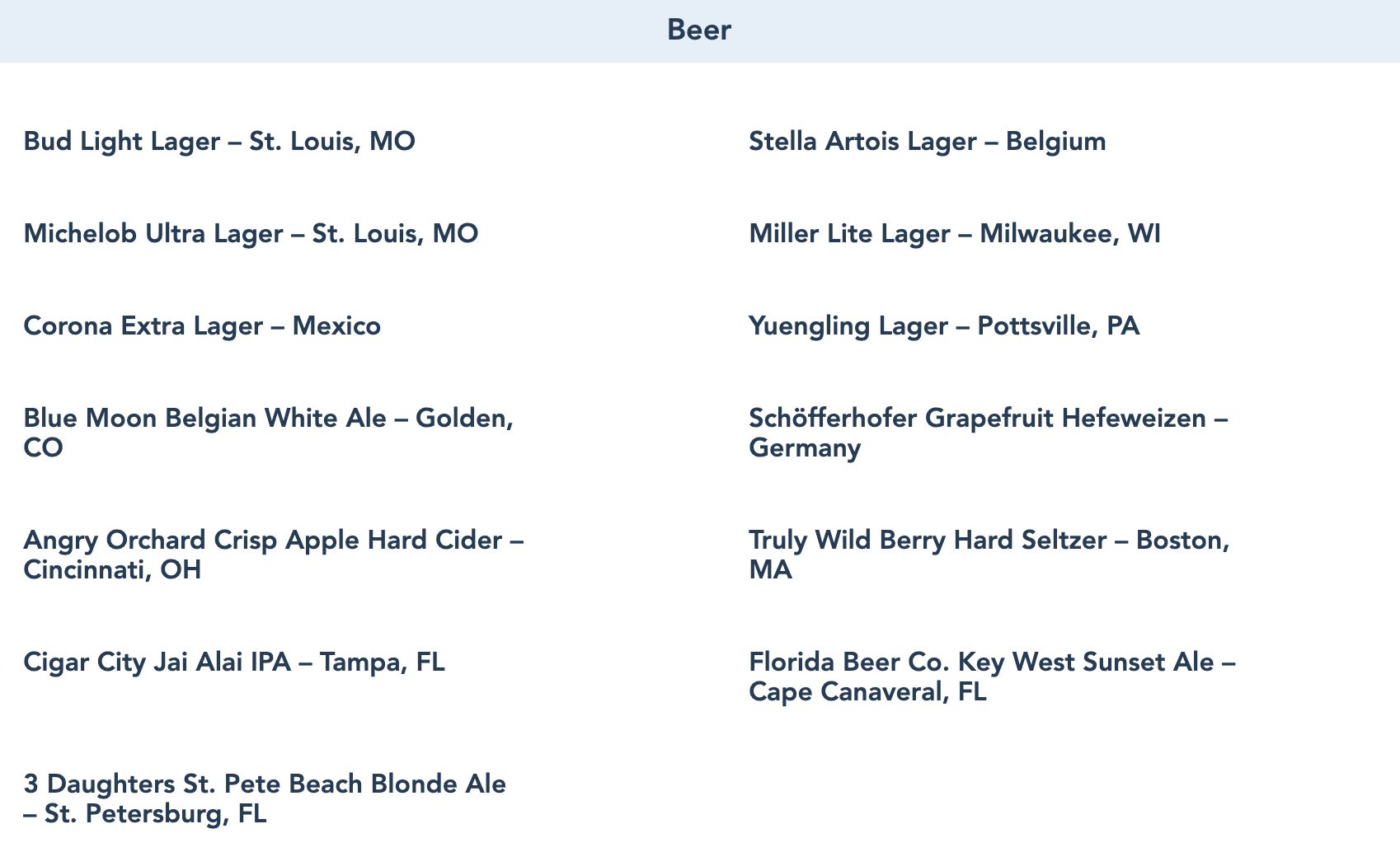 You can pair your dinner with a wide selection of Beer…