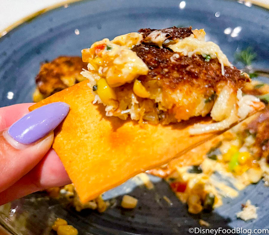 Continuing on with our appetizer indulgences, we tried the Lump Crab Cakes for $15. These crab cakes came with an Old Bay Rémoulade, Corn Hash, and House-made Saltine Crackers (a nice nod to Walt since he carried crackers in his jacket pocket).