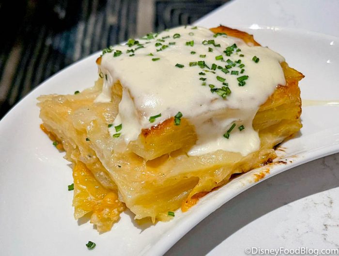 On the other hand, the Au Gratin Potatoes were sooo good. If you were a fan of The Wave restaurant, the Garlic Cream sauce on top of these potatoes might taste familiar! We cannot say enough good things about these potatoes — they were perfection!