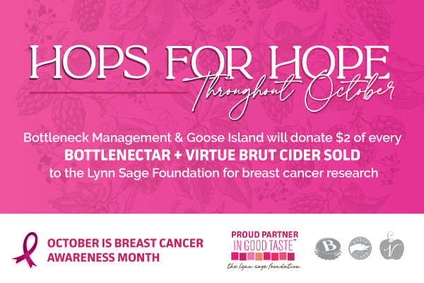 For every one of Goose Island’s Bottlenectar Beer and Virtue Brut Cider sold at City Works from October 1st to 31st, City Works and Goose Island will each donate $1 to breast cancer research!
