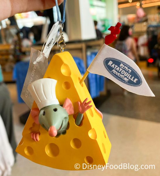 We also spotted this dangling keychain with an assortment of pretty Remy’s Ratatouille Adventure-inspired charms (including one that looks like the ride vehicle!) for $14.99.