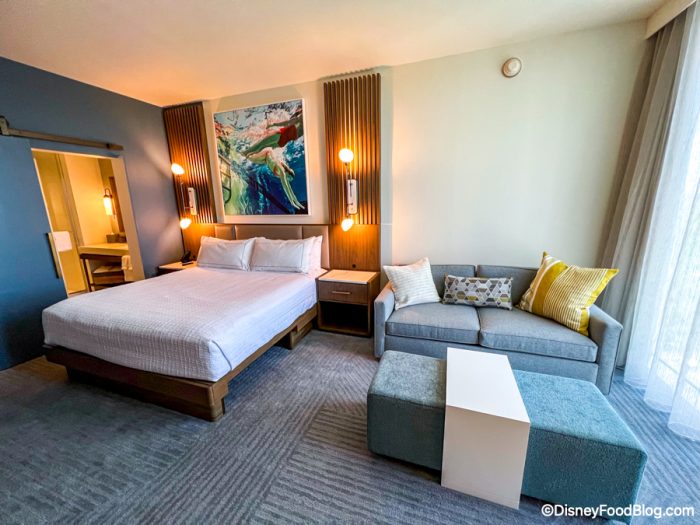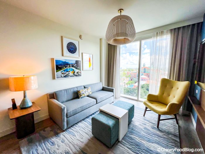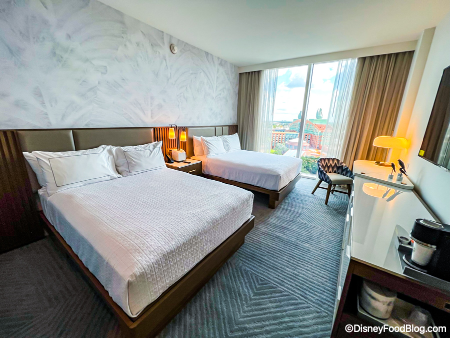 Every room has floor-to-ceiling windows that give you great views of EPCOT, Hollywood Studios, and you can even see Magic Kingdom from a few rooms!
