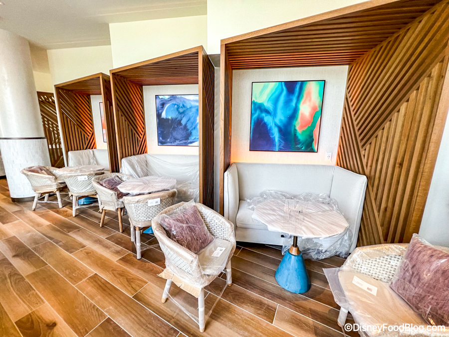 Moving past the bar, you’ll find more seating that’s a bit more intimate thanks to these wooden dividers.